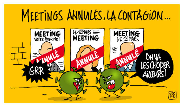 Campagne municipale totalement inédite, à quelques jours du premier tour, avec l’annulation en cascade de réunions publiques des candidats ! Plus fort que l’abstention, le coronavirus ?