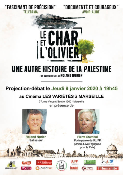 Projection le jeudi 9 janvier 2020 à 19h45, au cinéma les Variétés à Marseille du film documentaire : Le char et l’olivier, une autre histoire de la Palestine, réalisé par Roland Nurier.