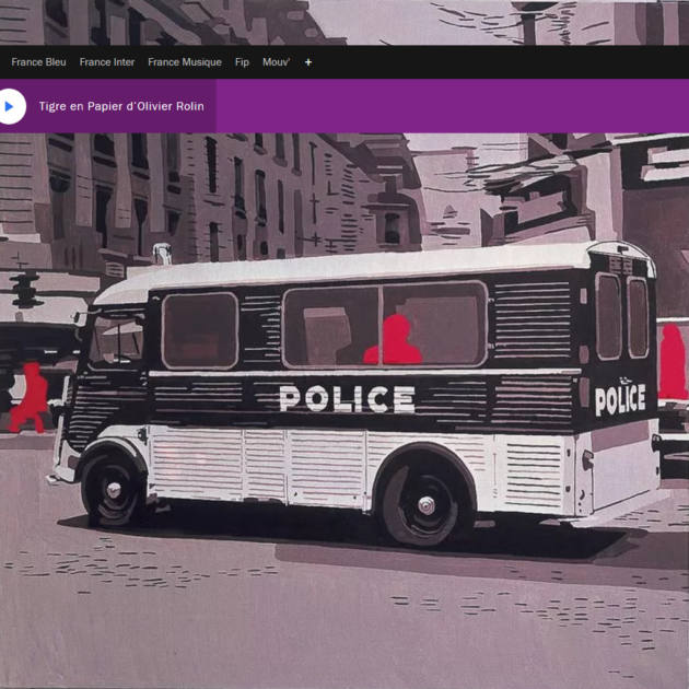 Tigre en papier, fiction radio de Anna Sigalevitch et Pauline Thimonnier, 1h20, France Culture, en écoute gratuite https://www.franceculture.fr/emissions/fictions-theatre-et-cie/tigre-en-papier-dolivier-rolin-2904